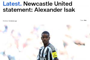 体育资讯08月20日讯 伊萨克今日在社媒发文,指责纽卡违背承诺,纽卡斯尔联官方刚刚发文回应,表示从未承诺伊萨克今夏可以离队。