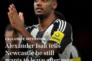 体育资讯08月26日讯 电讯报独家:伊萨克仍想离队&重申希望去利物浦,将继续罢训