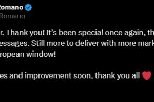 罗马诺:这个夏天太难忘了。谢谢大家!这段经历依旧意义非凡,感谢大家的支持与留言。目前仍有更多市场尚未关闭,我们还有许多工作要推进…… 但这个欧洲转会窗口已经足够精彩!