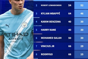 体育资讯10月2日讯 在本轮欧冠曼城2-2战平摩纳哥的比赛中,哈兰德梅开二度。以下为自哈兰德2019年首秀以来欧冠进球榜: