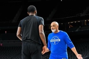 体育资讯10月23日讯 独行侠助教菲尔-汉迪更新社媒,晒出了训练时指导球员的照片。